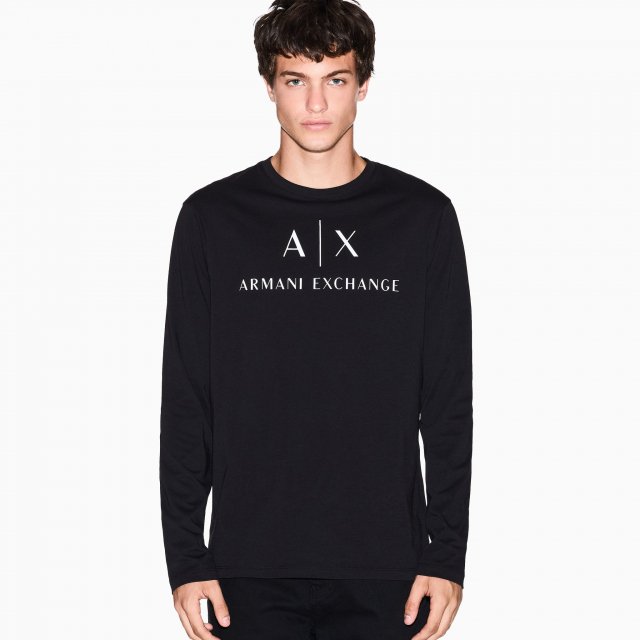 Armani Exchange Men’s Black Long Sleeve T-Shirt with Logo Print