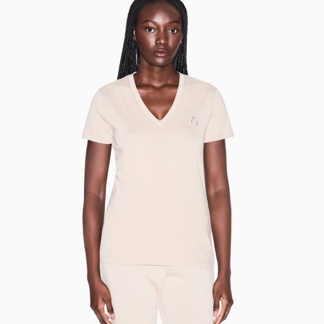 With a clean, modern cut and a versatile beige color, this T-shirt pairs effortlessly with your favorite jeans, shorts, or skirts. The V-neckline adds a subtle touch of femininity, while the short sleeves make it ideal for warm weather. Whether you’re heading out for a brunch date, enjoying a sunny afternoon in the park, or running errands around town, this T-shirt offers just the right amount of style and comfort for your spring and summer activities.