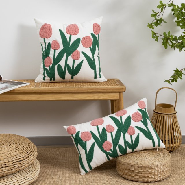 Crafted from a high-quality cotton and polyester blend, this pillow cover offers a smooth yet durable texture that feels comfortable to the touch. The fabric is breathable and suitable for daily use, while the carefully woven construction gives it a neat, refined finish. Its square shape fits most standard throw pillows, making it easy to mix and match with your existing décor. The tulip pattern adds visual interest while keeping a natural, relaxed look.