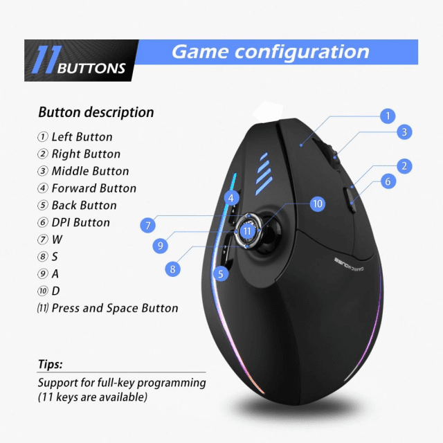 Take control with a mouse that works as hard as you do. Enjoy smoother movements, reduced wrist fatigue, and fully personalized controls in one powerful device. Add this ergonomic vertical gaming mouse to your setup today and feel the difference with every click.
