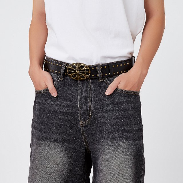 What makes this belt special is its unique blend of classic casual wear and bold punk design. The bronze metal flower buckle becomes the centerpiece of your outfit, instantly drawing attention and adding personality. Unlike plain belts, this one acts as a decorative accessory that enhances your overall look rather than blending in.