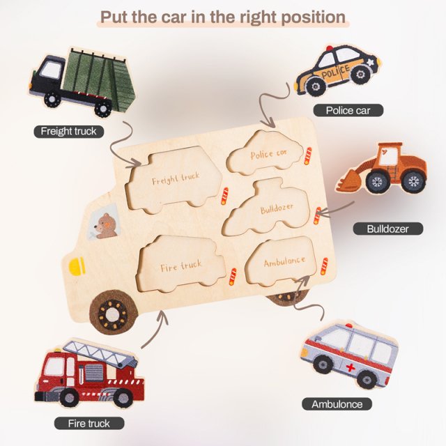Montessori Wooden Car & Farm Shape Puzzle Board for Babies