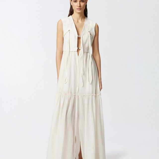Pinko Sleeveless Cotton Maxi Dress with Utility Vest Top