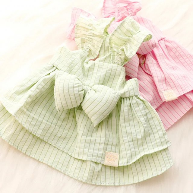 What makes this dress special is its clean striped design paired with a lovely bowknot. The combination adds a cute yet elegant look that suits everyday wear as well as special occasions. Available in soft green and pink shades, it adds a fresh pop of color to your dog’s wardrobe while keeping the style simple and refined.