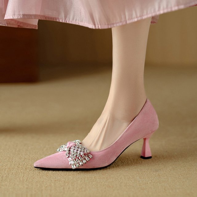 Step into timeless charm with these beautifully crafted women’s pumps designed to elevate your spring and autumn wardrobe. Made from soft sheep suede leather, these shoes offer a luxurious look and feel while staying comfortable from morning to night. The pointed toe creates a flattering silhouette, while the delicate bow-knot detail adds a sweet, feminine touch that never goes out of style.