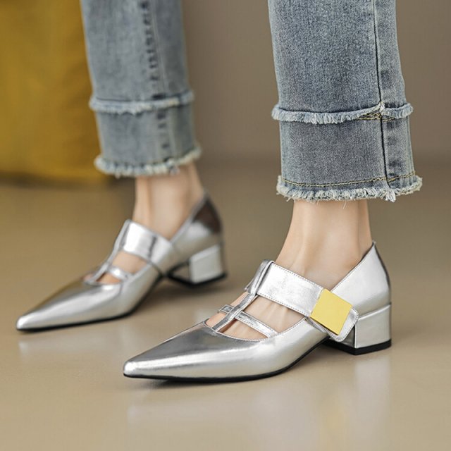 The pointed toe adds a refined silhouette, while the glossy patent finish delivers an elegant, high-shine finish that pairs effortlessly with dresses, trousers, or skirts. The adjustable buckle slingback ensures a secure fit while giving the shoe an open, breathable feel — perfect for warm-weather styling. With just the right heel height, these sandals give you a graceful lift without compromising all-day comfort.